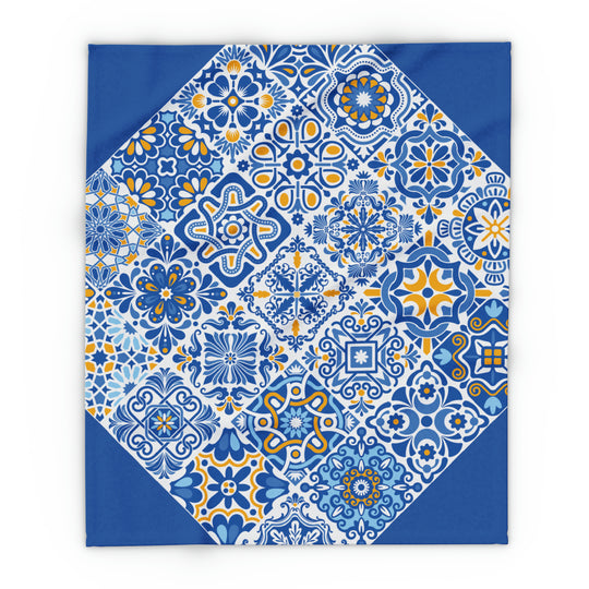 Blue Paisley Quilted Print Arctic Fleece Blanket